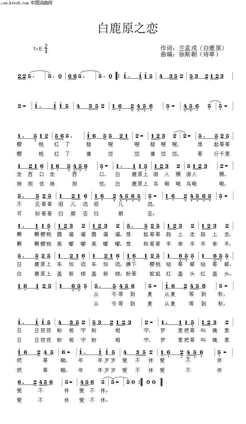 > 白鹿原之恋 白鹿原樱桃恋歌