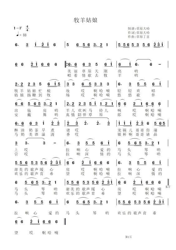 > 牧羊姑娘 1 F4 4 深情悠扬地