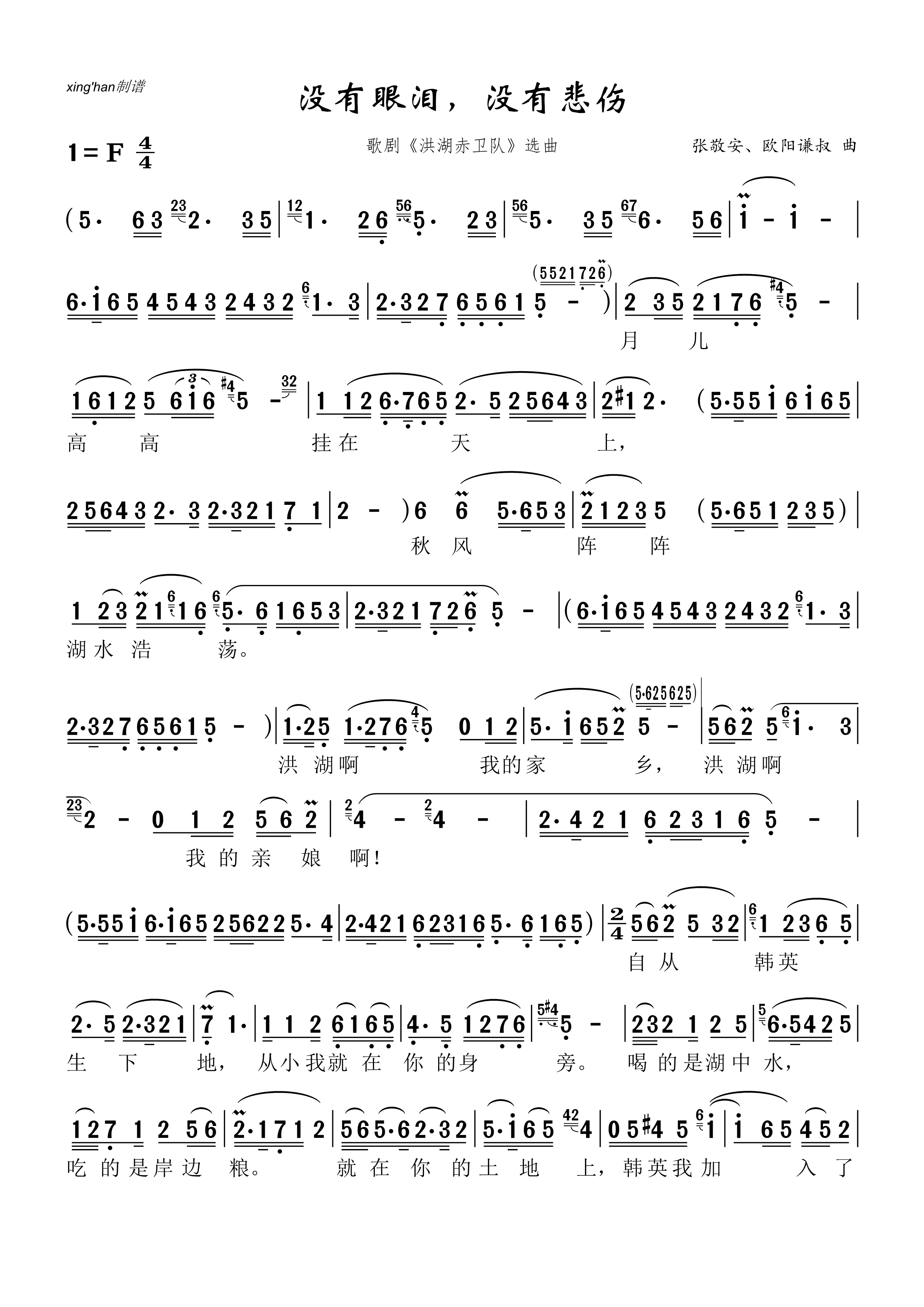 没有眼泪 没有悲伤 歌剧 洪湖赤卫队 选曲
