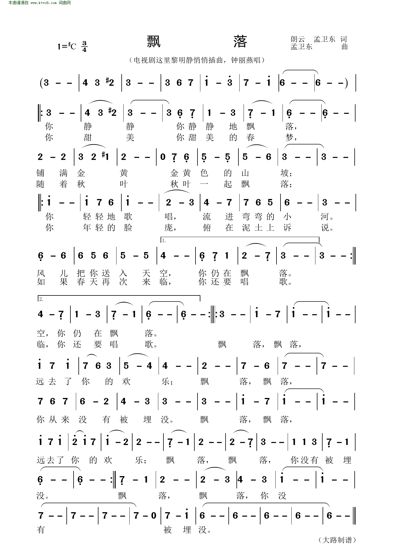 > 飘落 电视剧 这里的黎明静悄悄 插曲