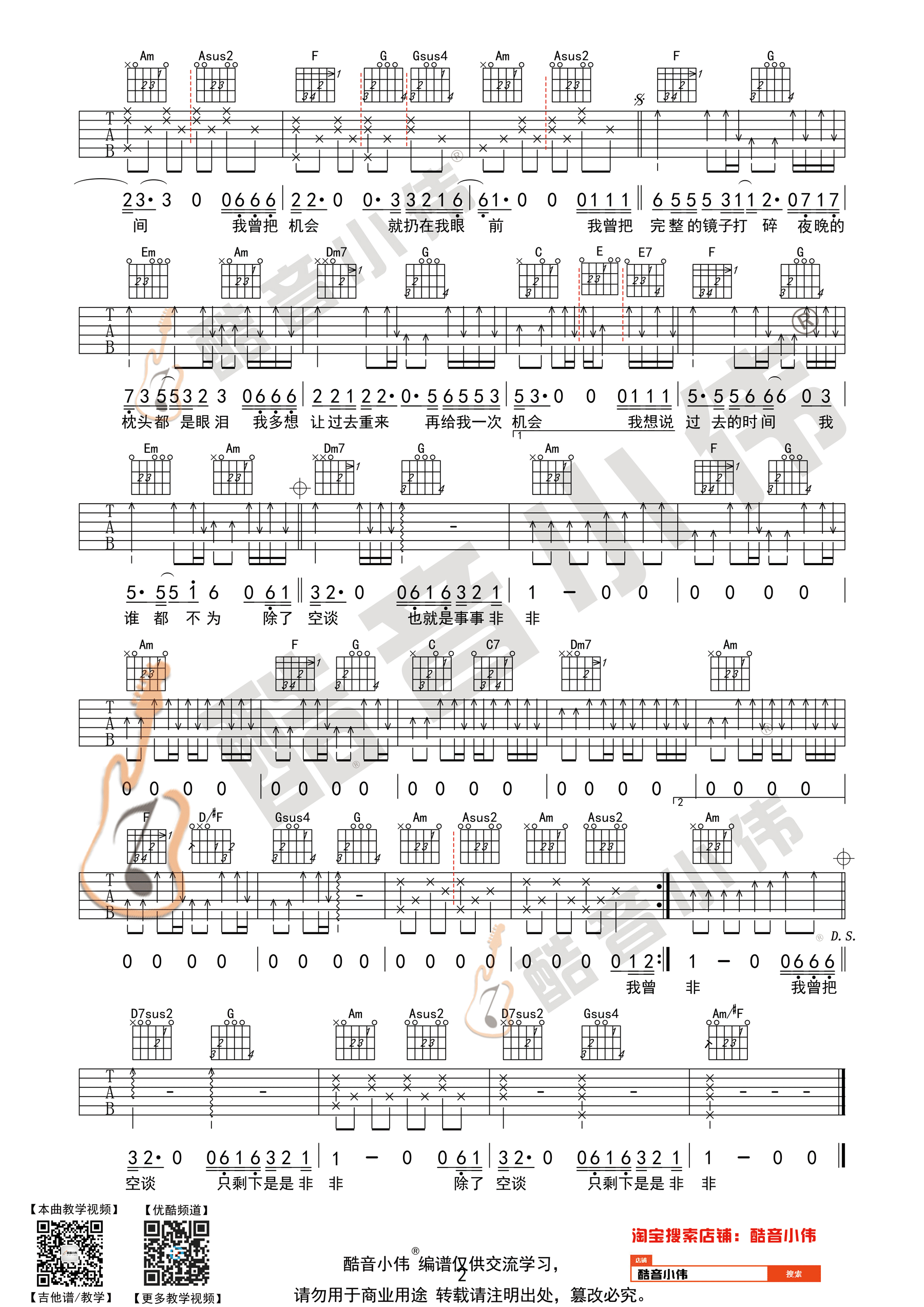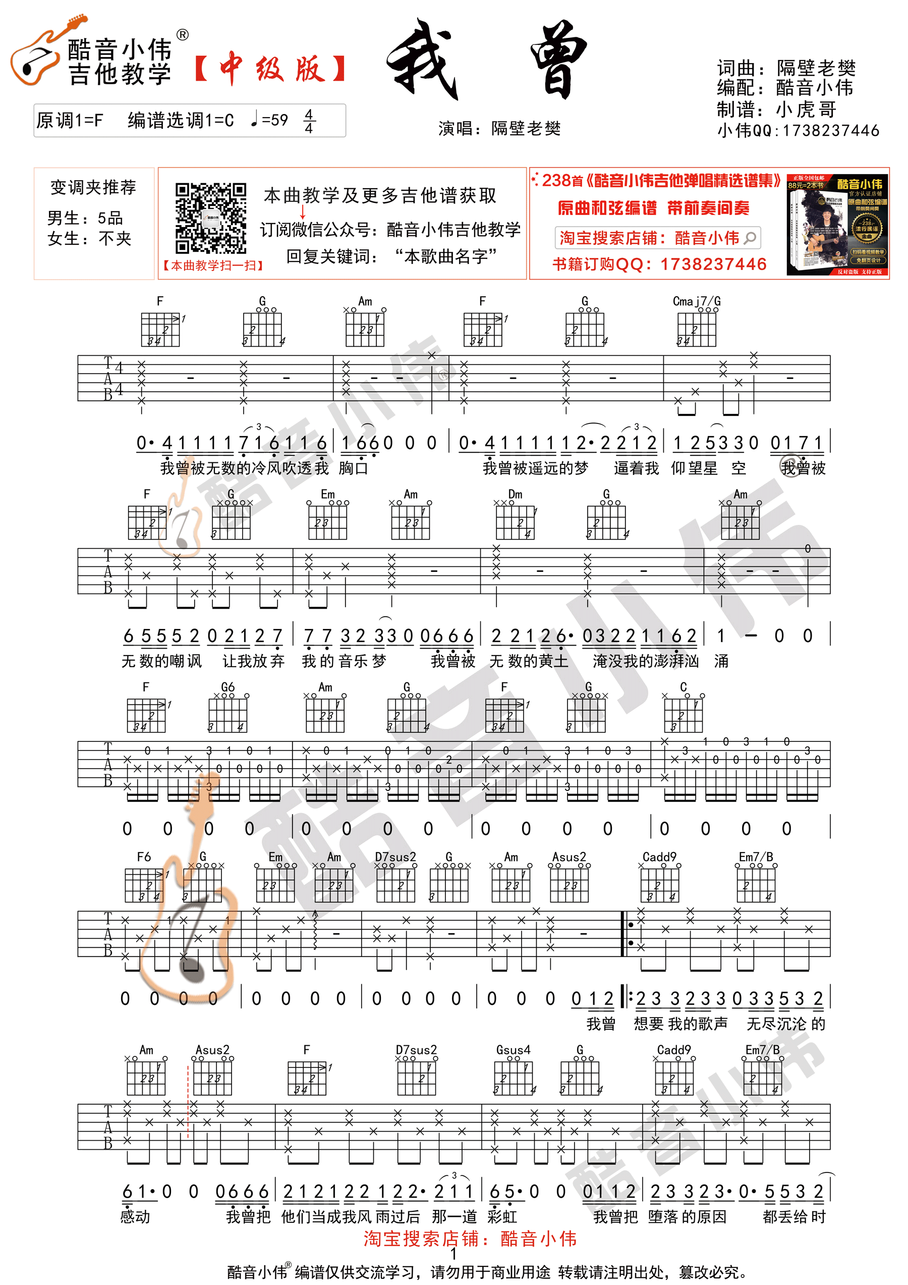 > 我曾 中级版 酷音小伟吉他弹唱教学