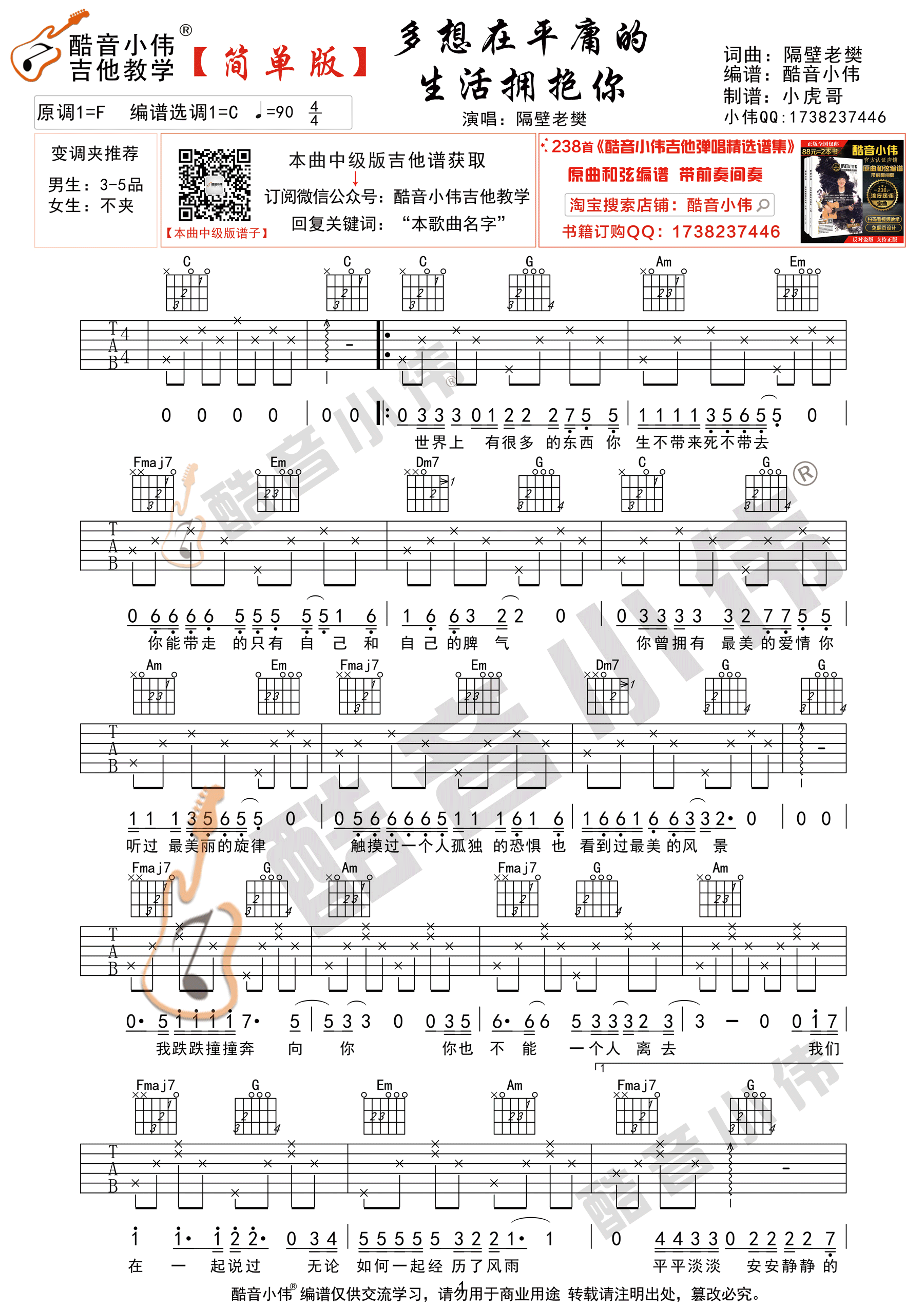 > 多想在平庸的生活拥抱你 简单版 酷音小伟吉他弹唱教学