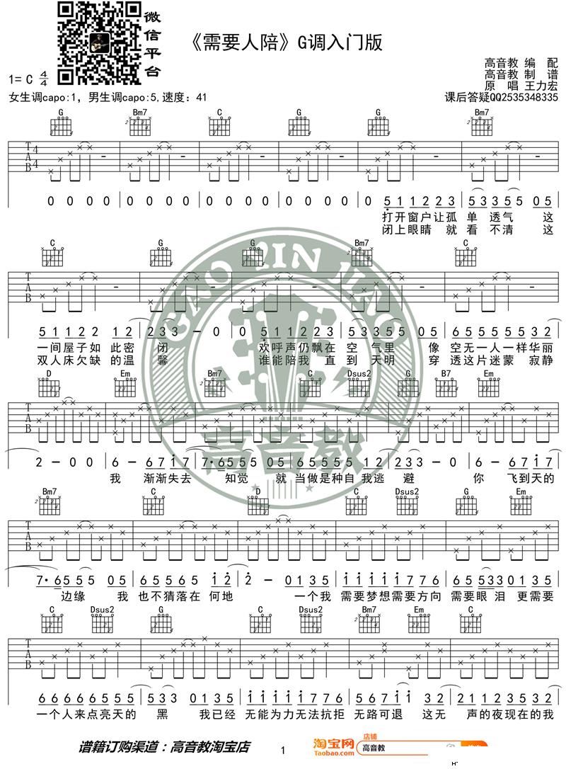 > 需要人陪 G调入门版 西虹市首富推广曲 高音教编配