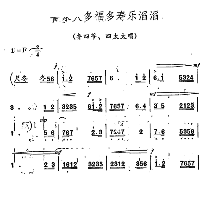 > 秦腔 祝福 唱腔选 鲁家人多福多寿乐滔滔 鲁四爷 四太太唱段