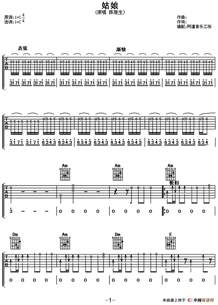> 姑娘 阿潘音乐工场编配版