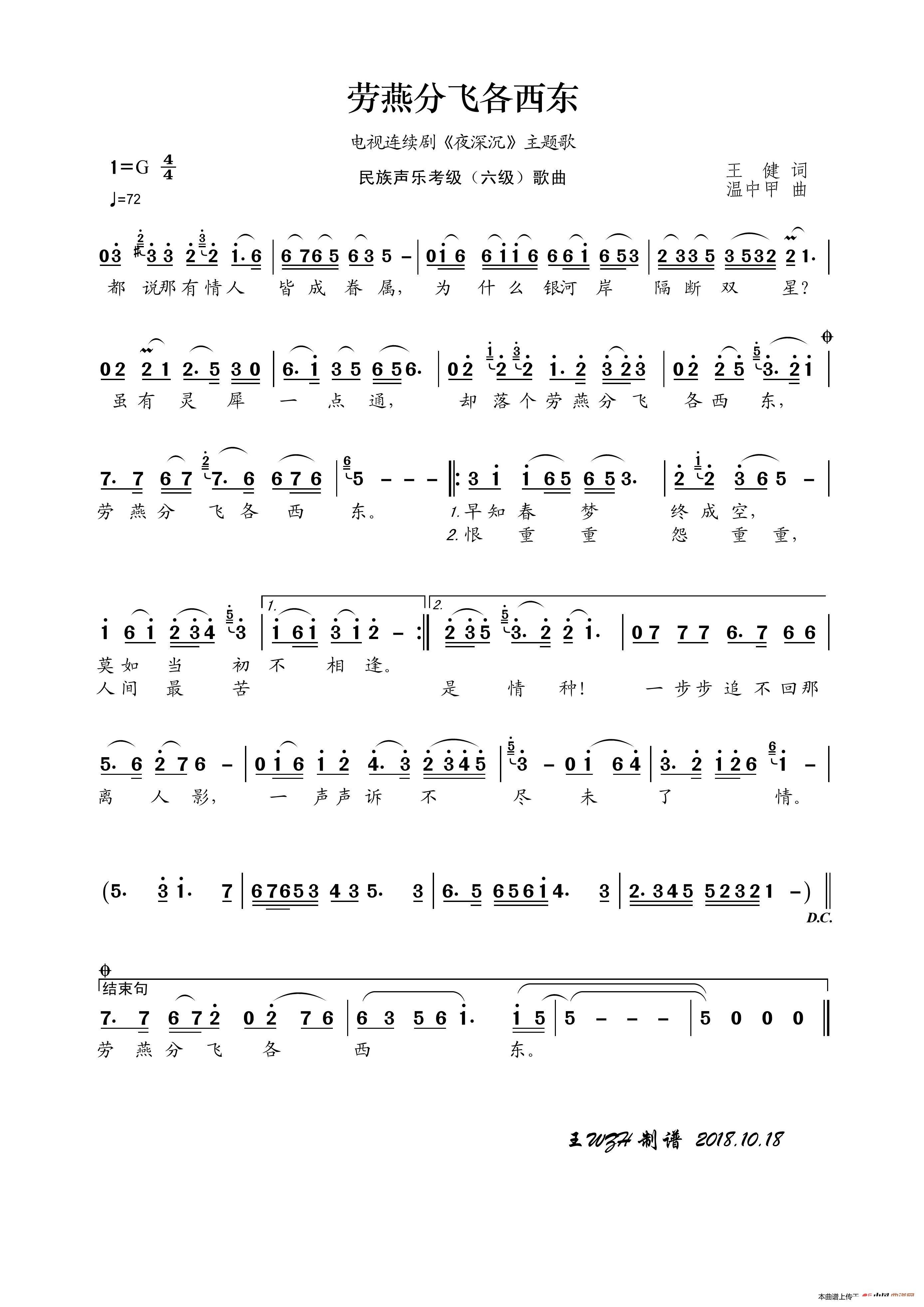 > 民族声乐考级歌曲 劳燕分飞各西东