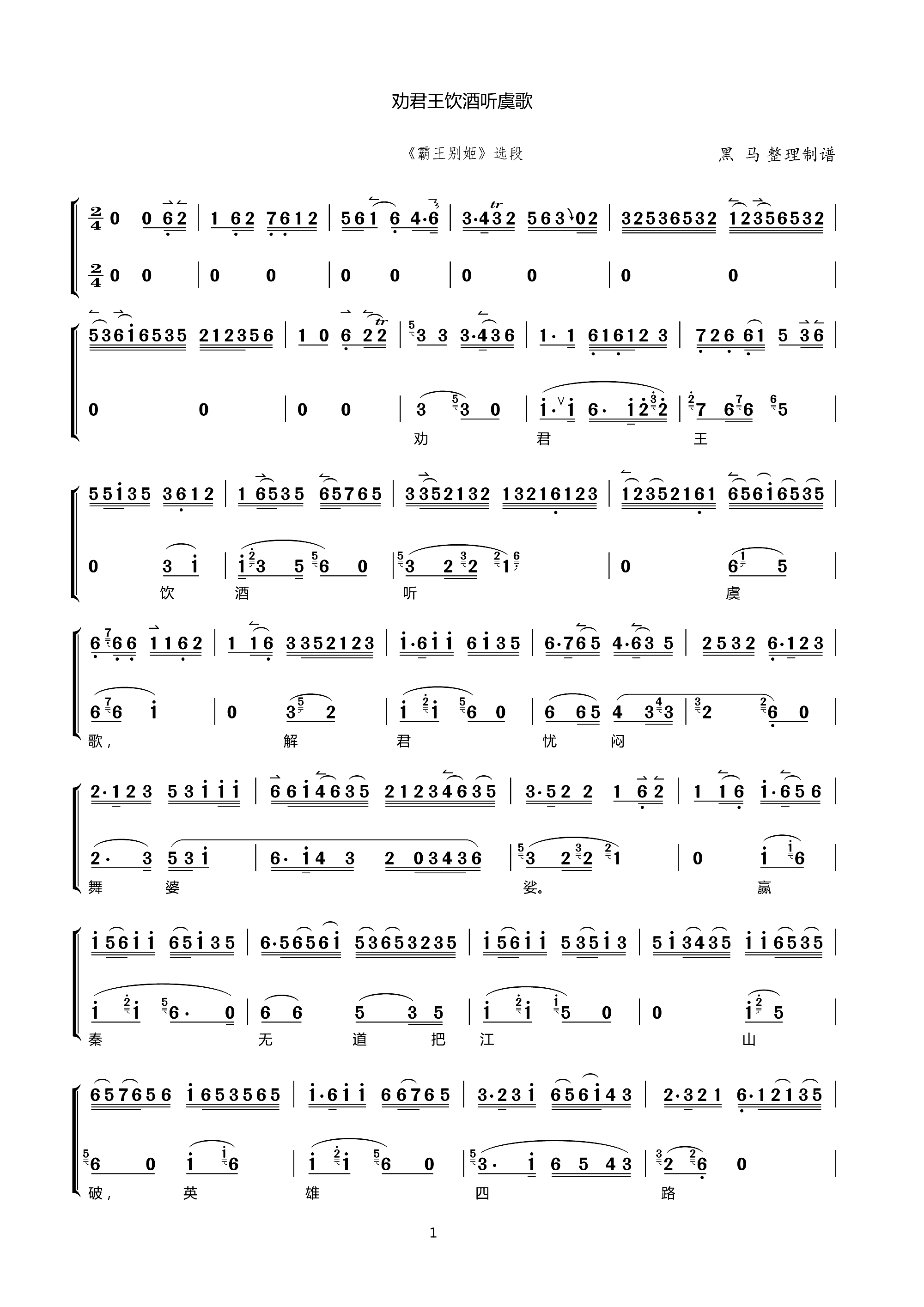 劝君王饮酒听虞歌 霸王别姬 选段 唱腔 伴奏