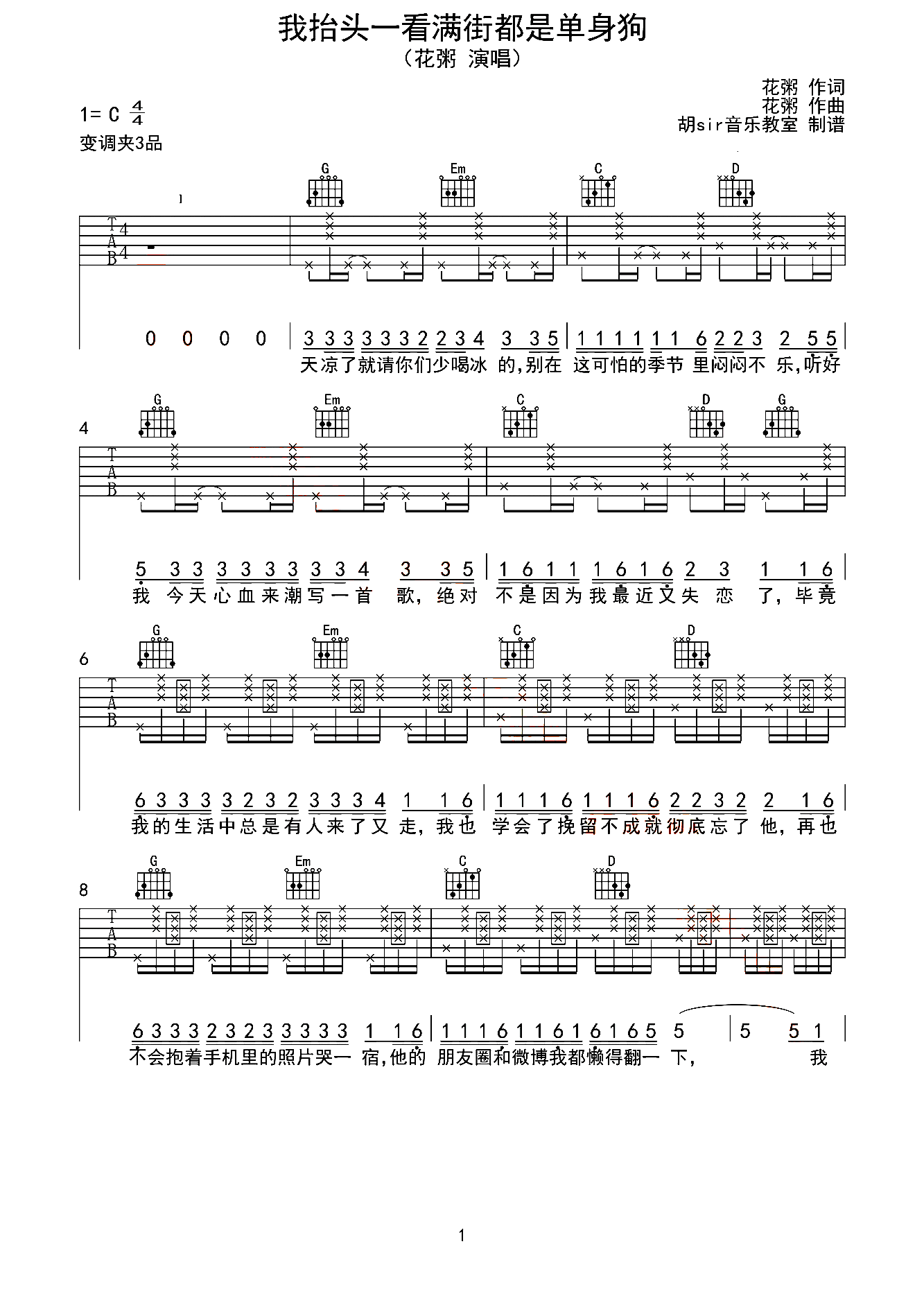 > 我抬头一看满街都是单身的狗 胡sir音乐教室编配版
