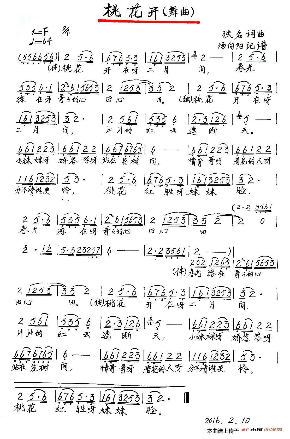> 桃花开 汤向阳记谱 手稿版