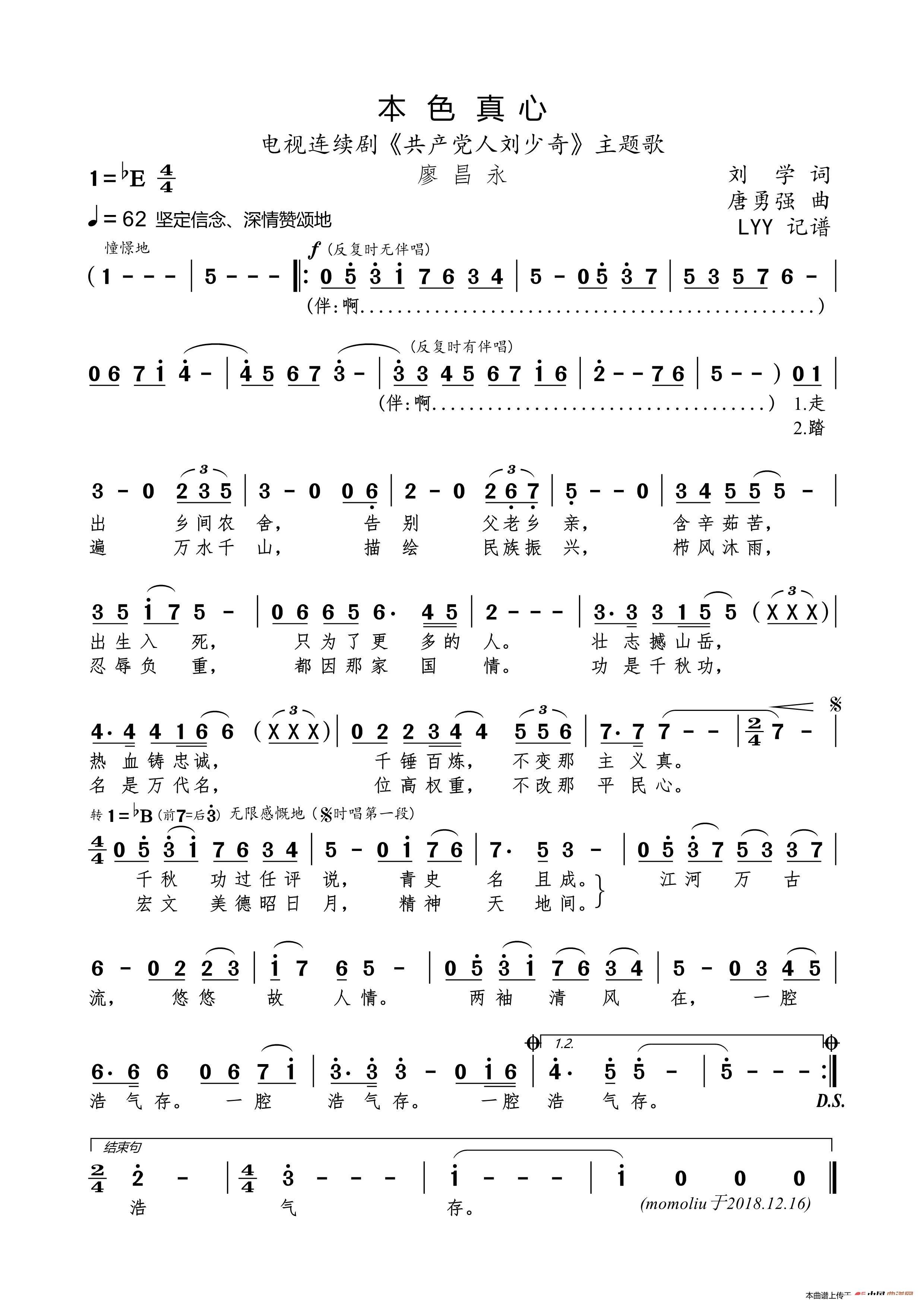 > 本色真心 电视剧 共产党人刘少奇 主题歌