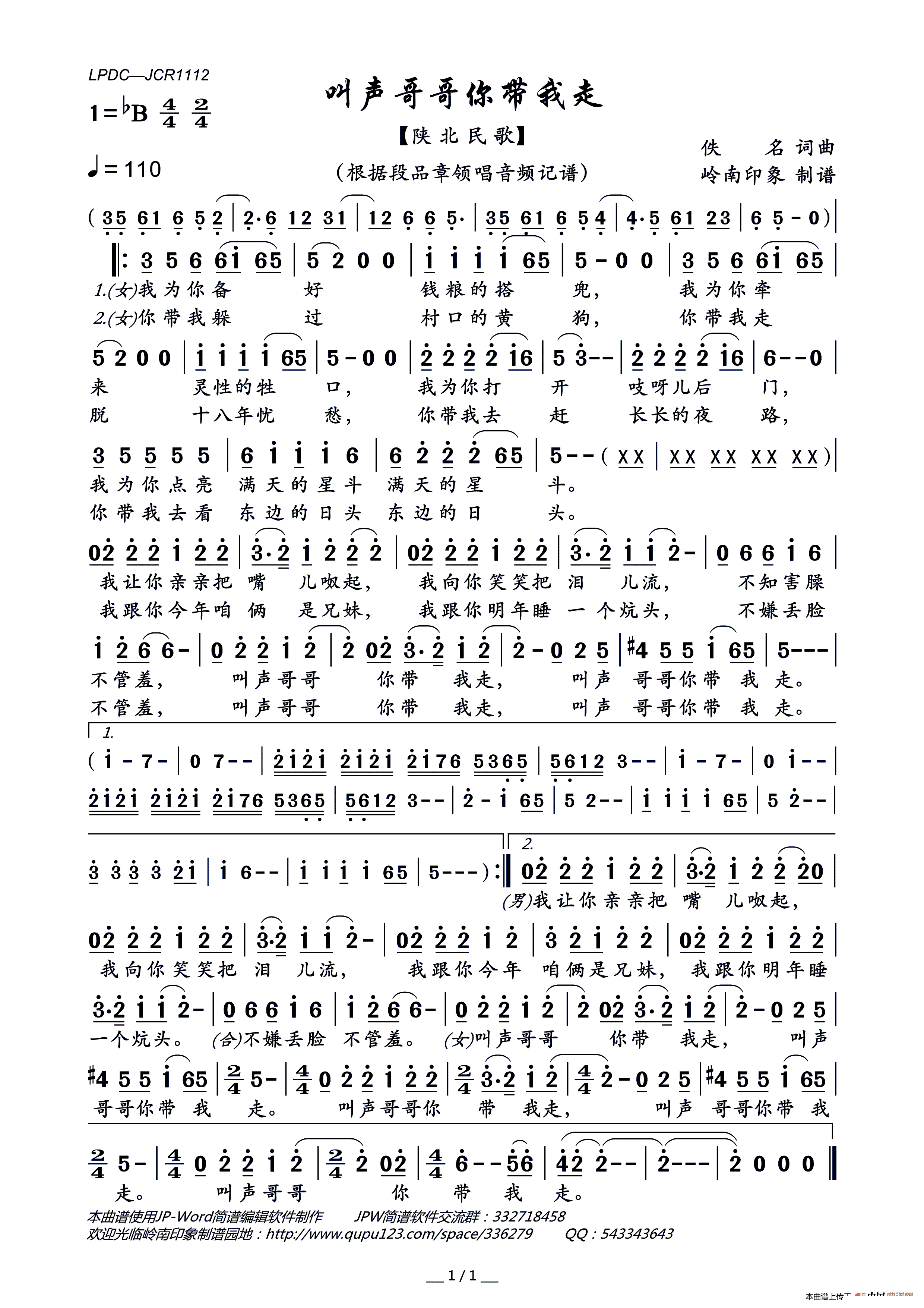 叫声哥哥你带我走 陕北民歌