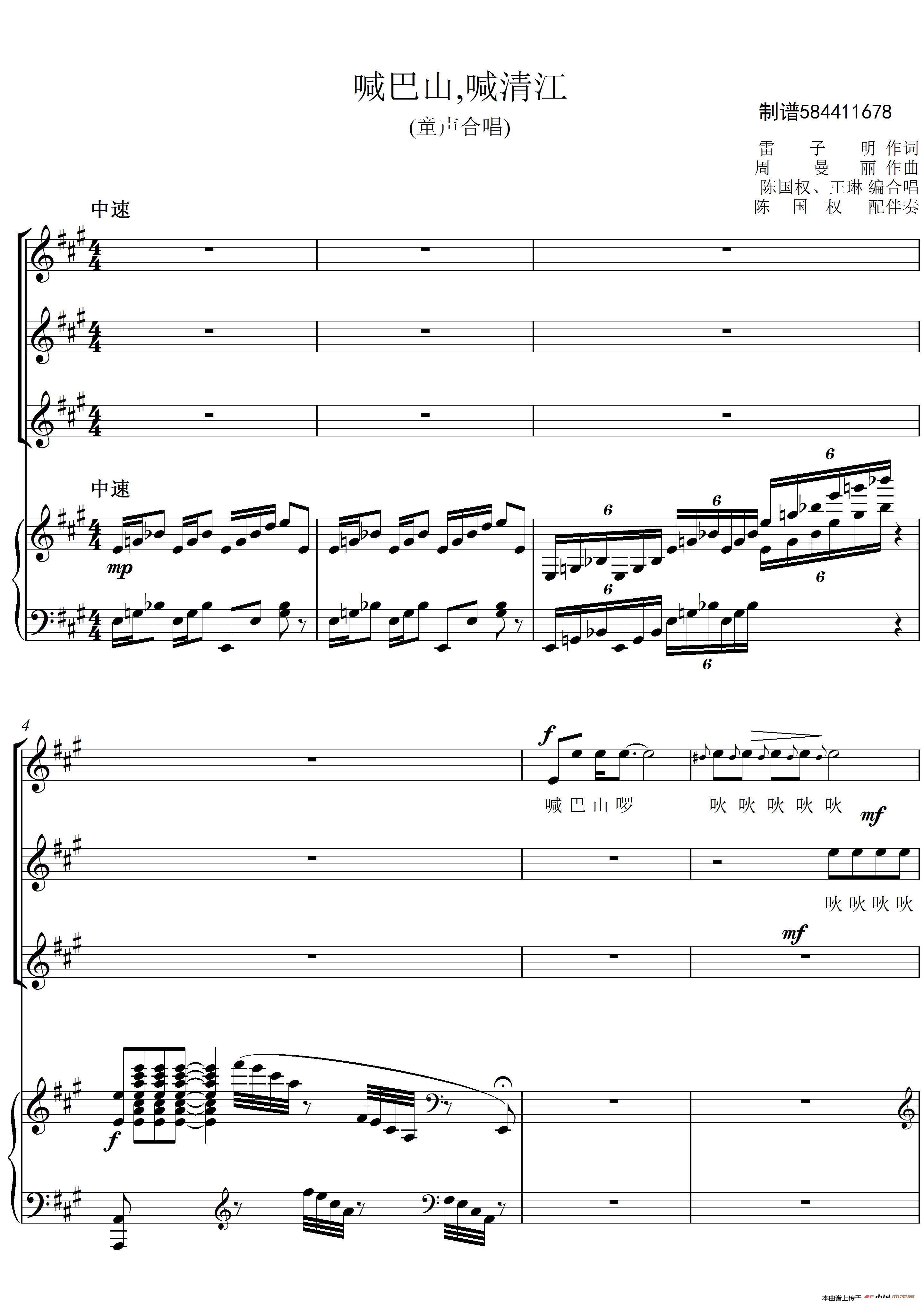 > 喊巴山喊清江合唱谱
