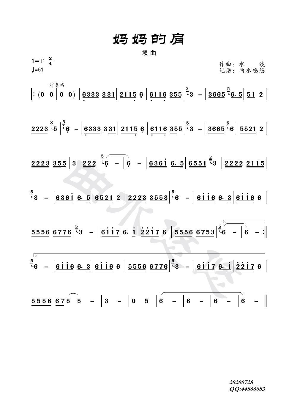 > 妈妈的肩 埙曲