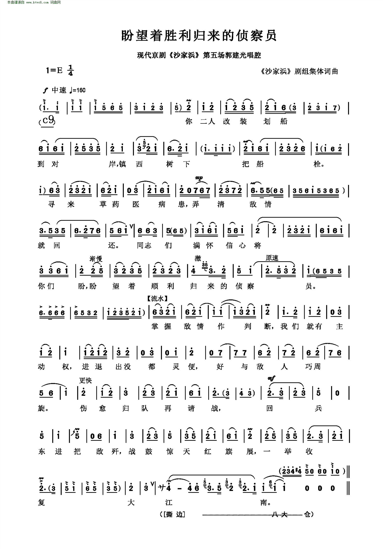 盼望着胜利归来的侦察员 现代京剧 沙家浜 第五场郭建光唱腔