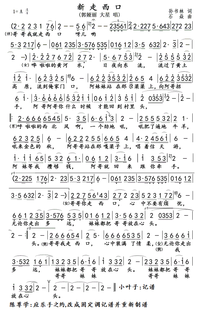 > 新走西口 不转调