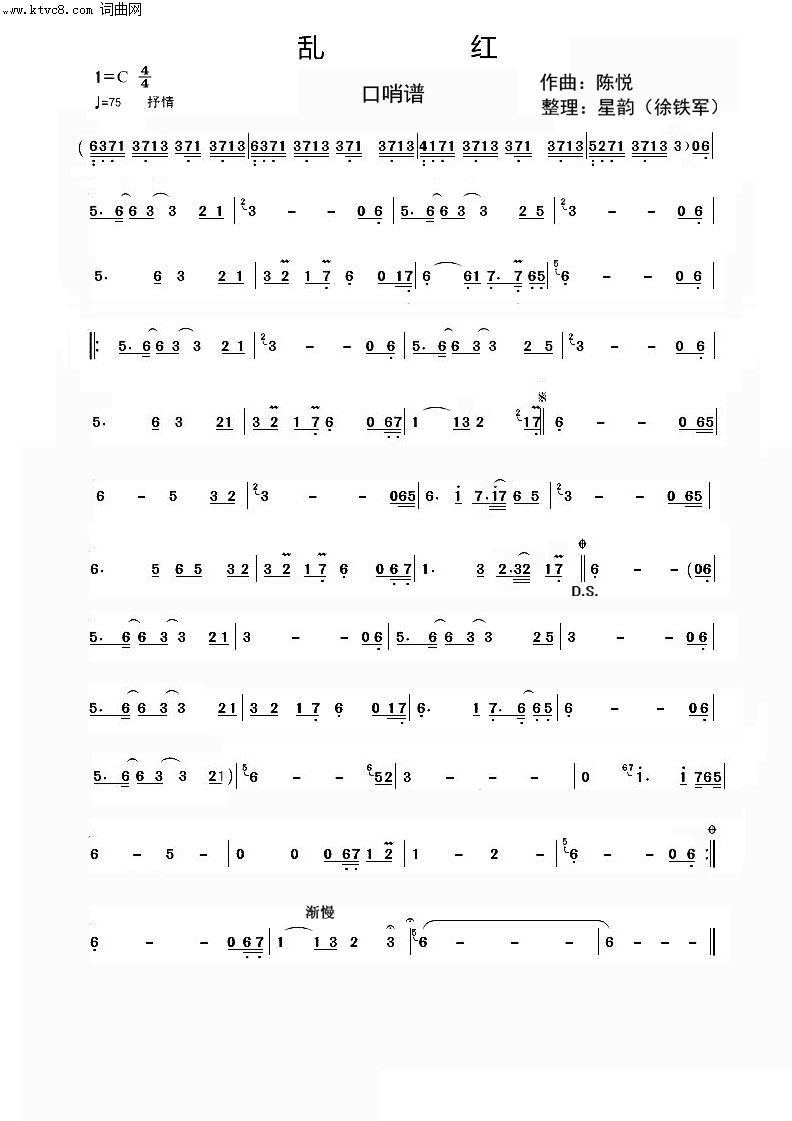 > 乱红 口哨谱