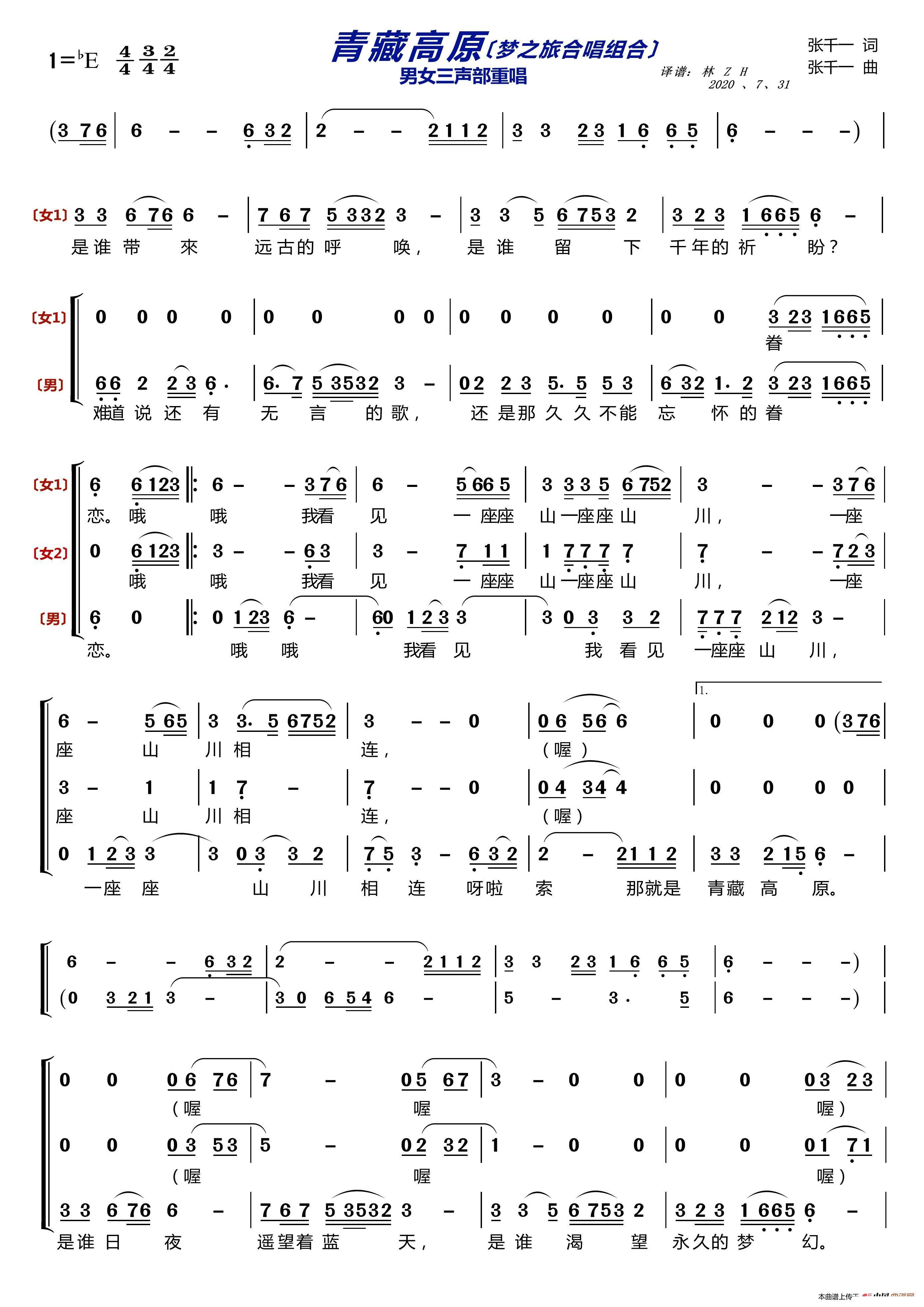 > 青藏高原〔梦之旅合唱组合〕 男女三声部重唱
