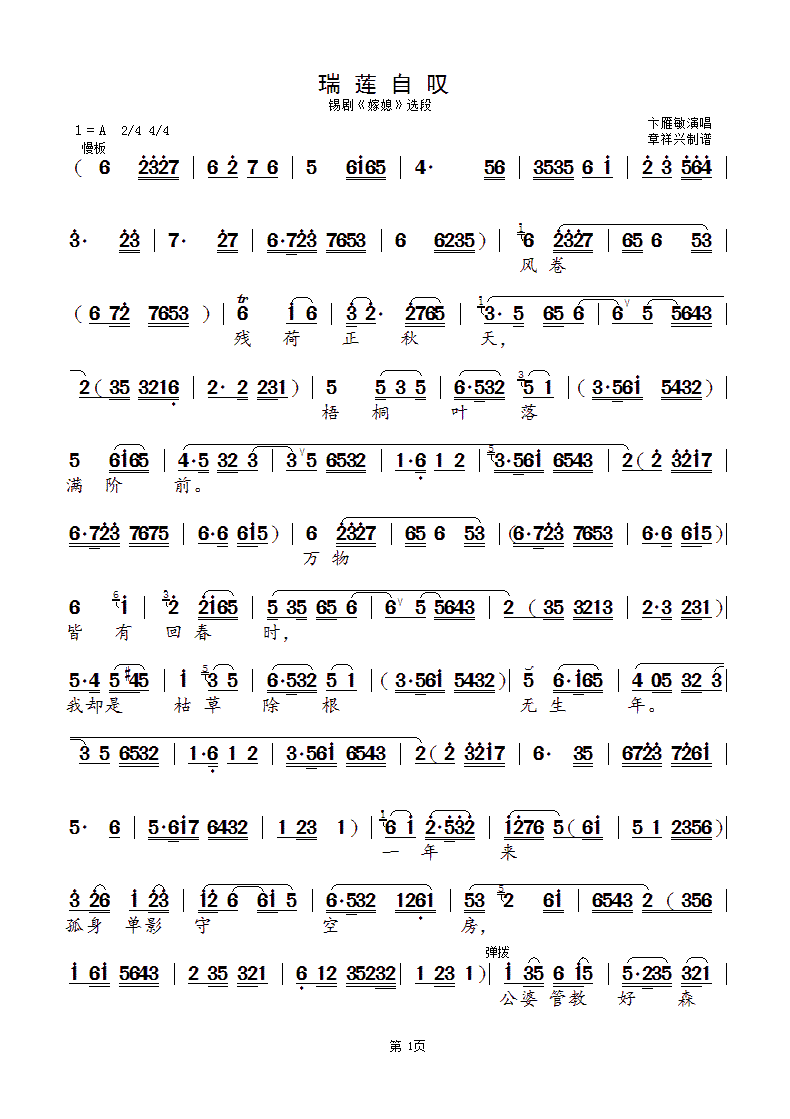 > 瑞莲自叹 锡剧 嫁媳 选段