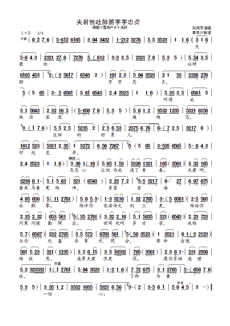 夫君吐肺腑字字忠贞 锡剧 雪地产子 选段