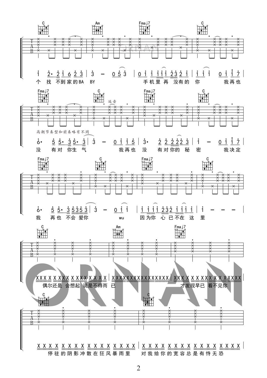 再也没有 精编版 阿珥楠吉他编配