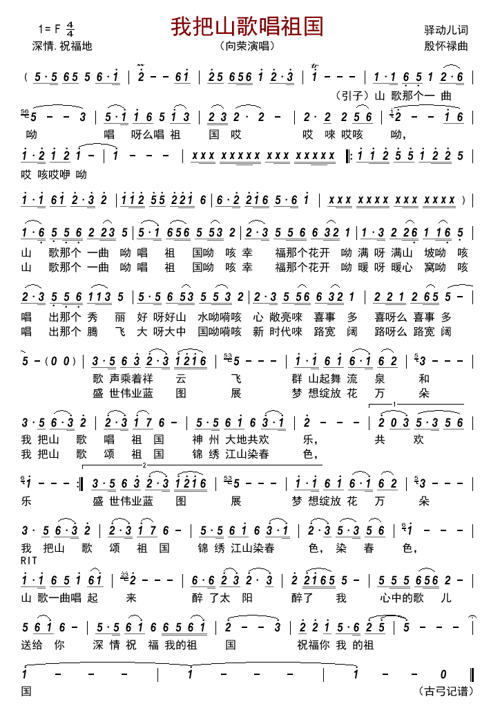 > 我把山歌唱祖国