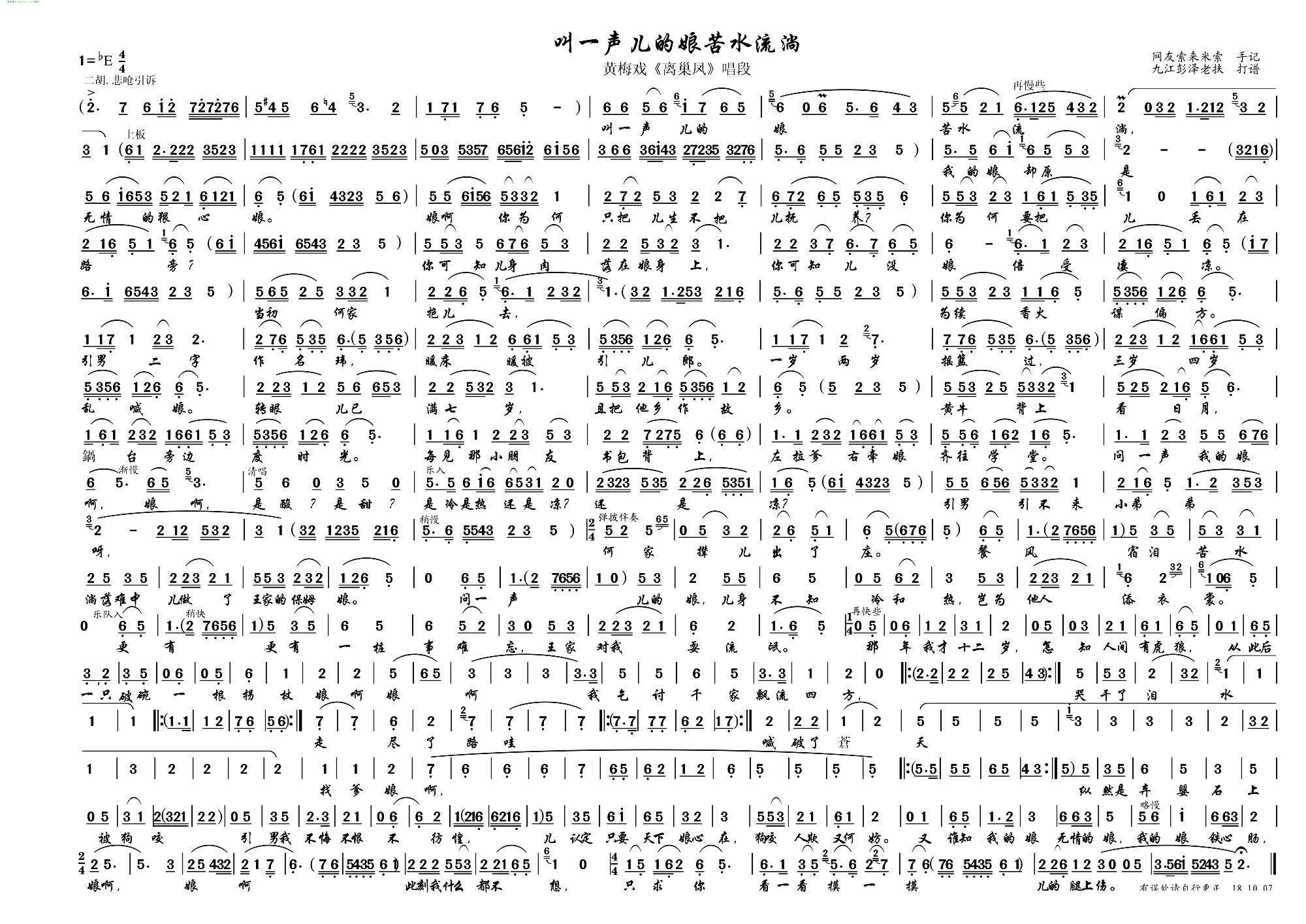叫一声儿的娘苦水流淌 黄梅戏 唱段