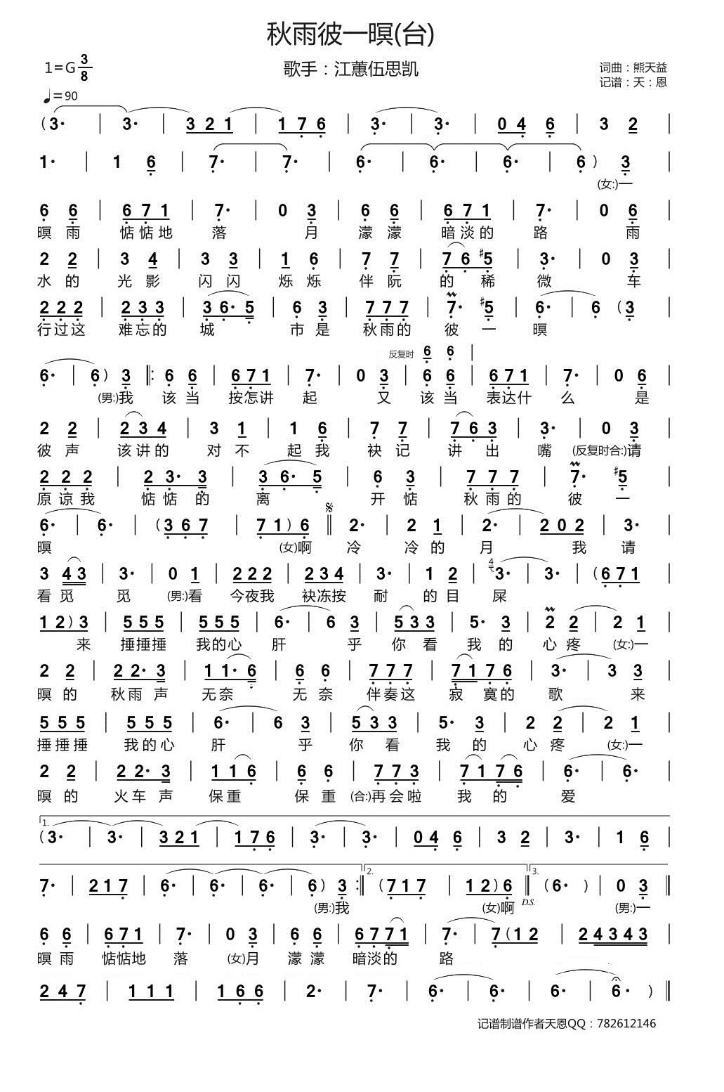> 秋雨彼一暝 台语