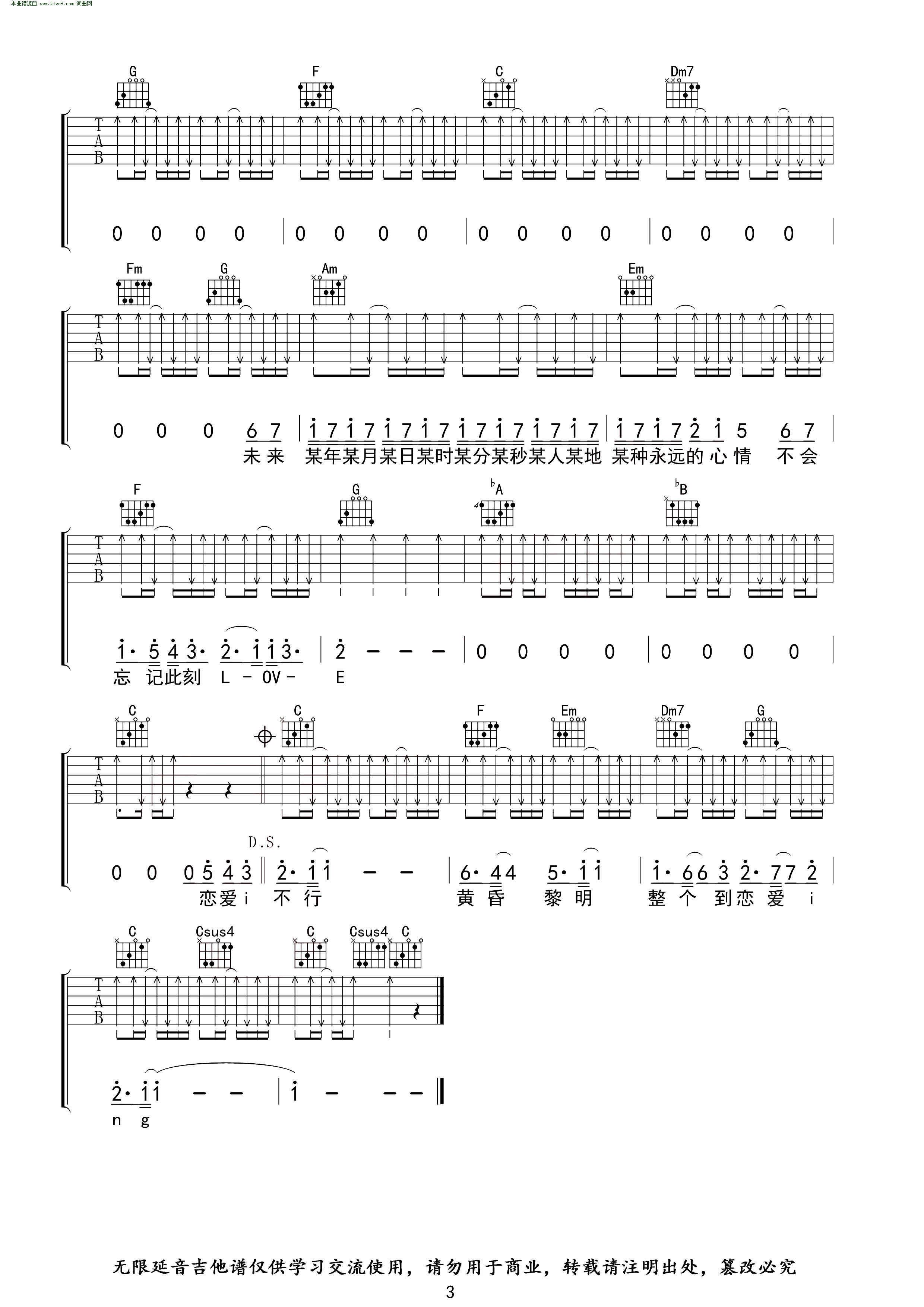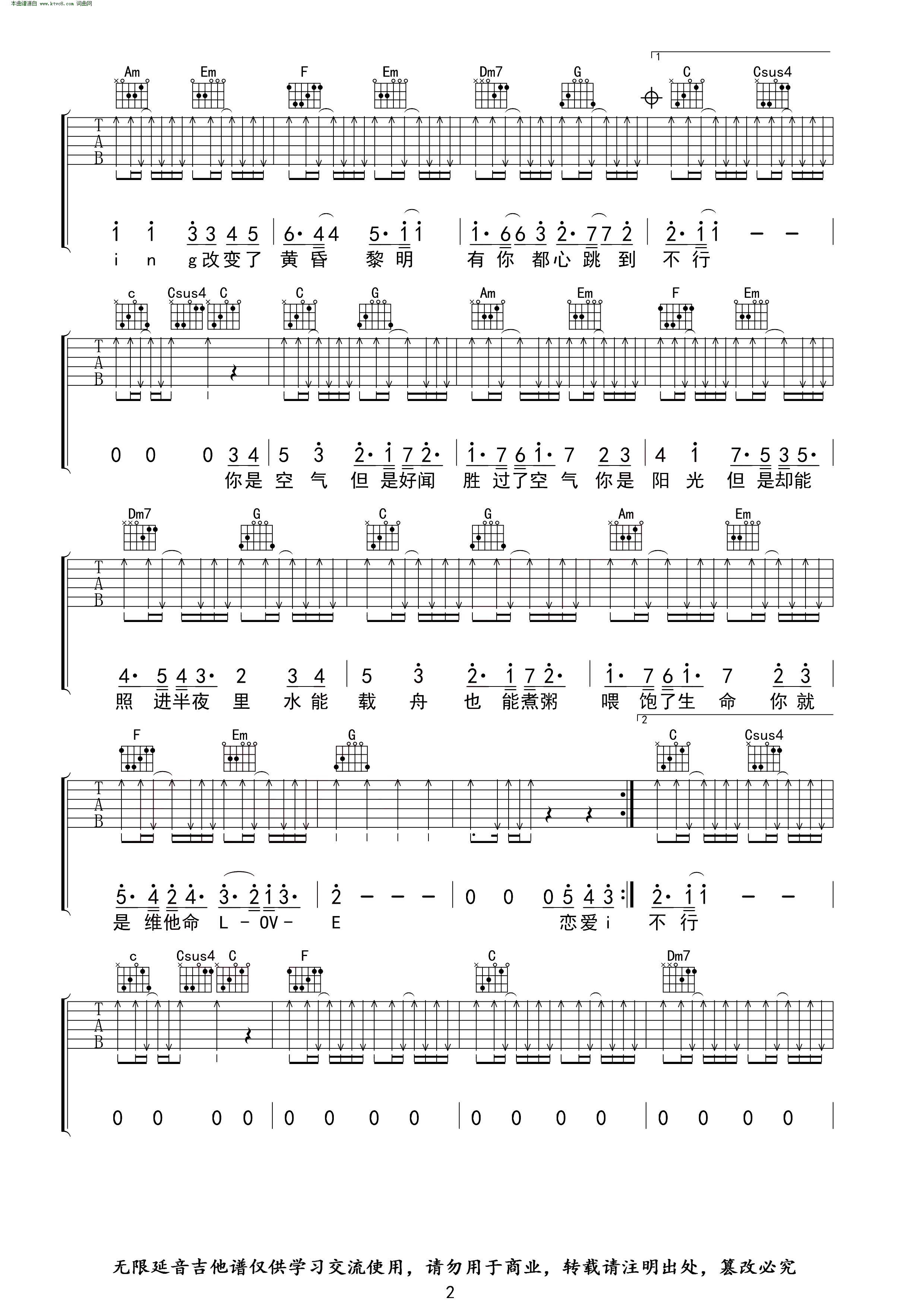> 恋爱ING C调指法 无限延音编配