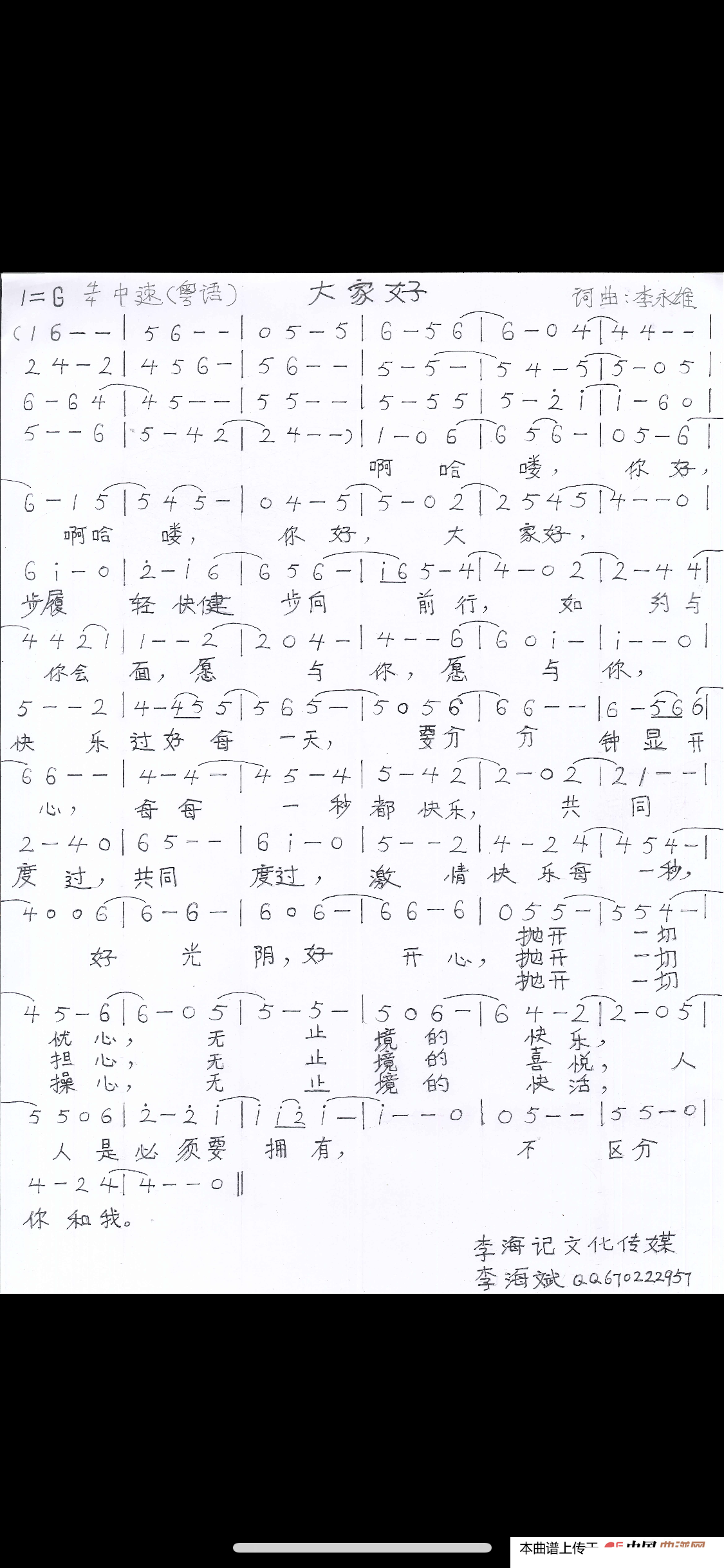 > 大家好 粤语版