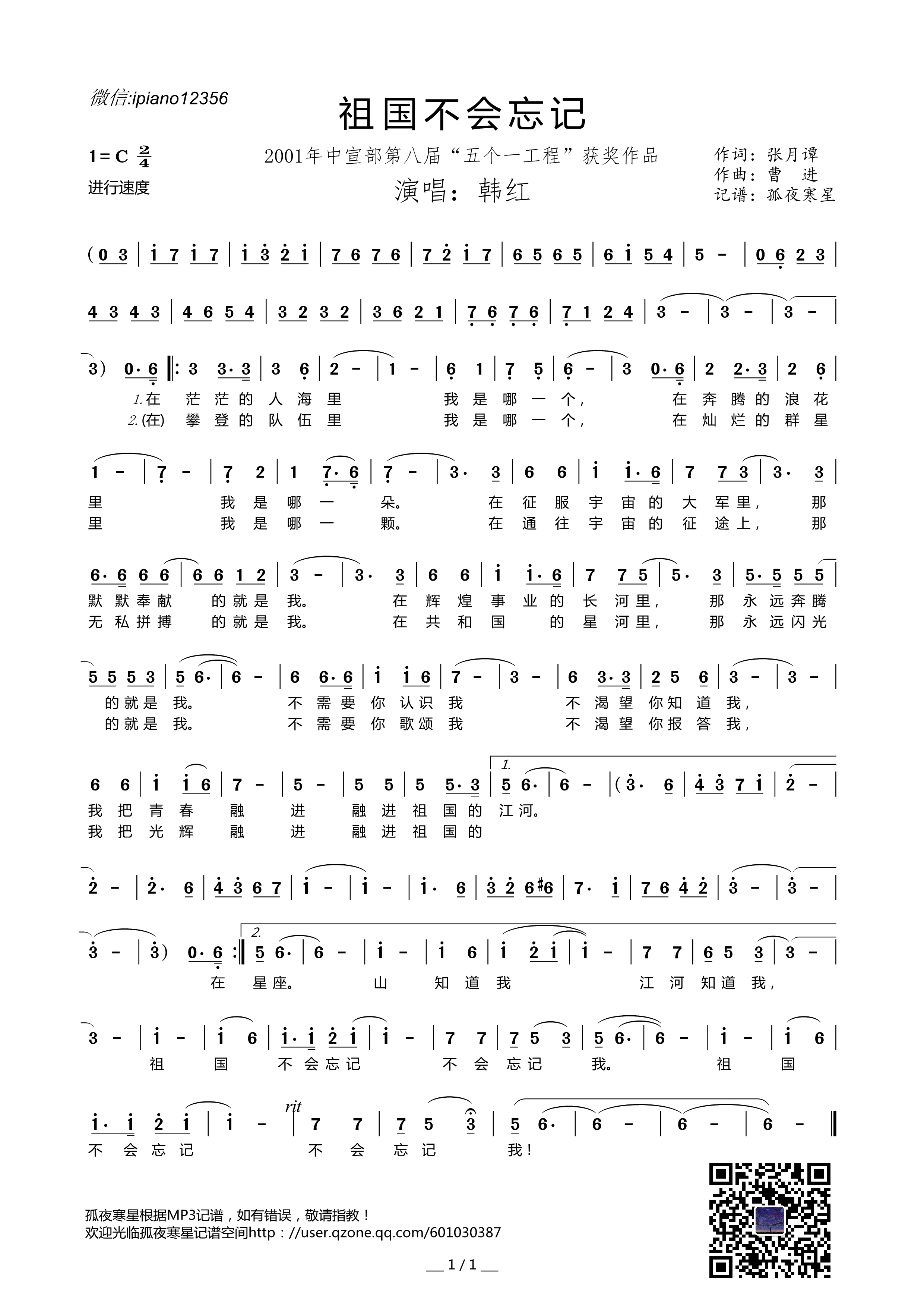 > 祖国不会忘记