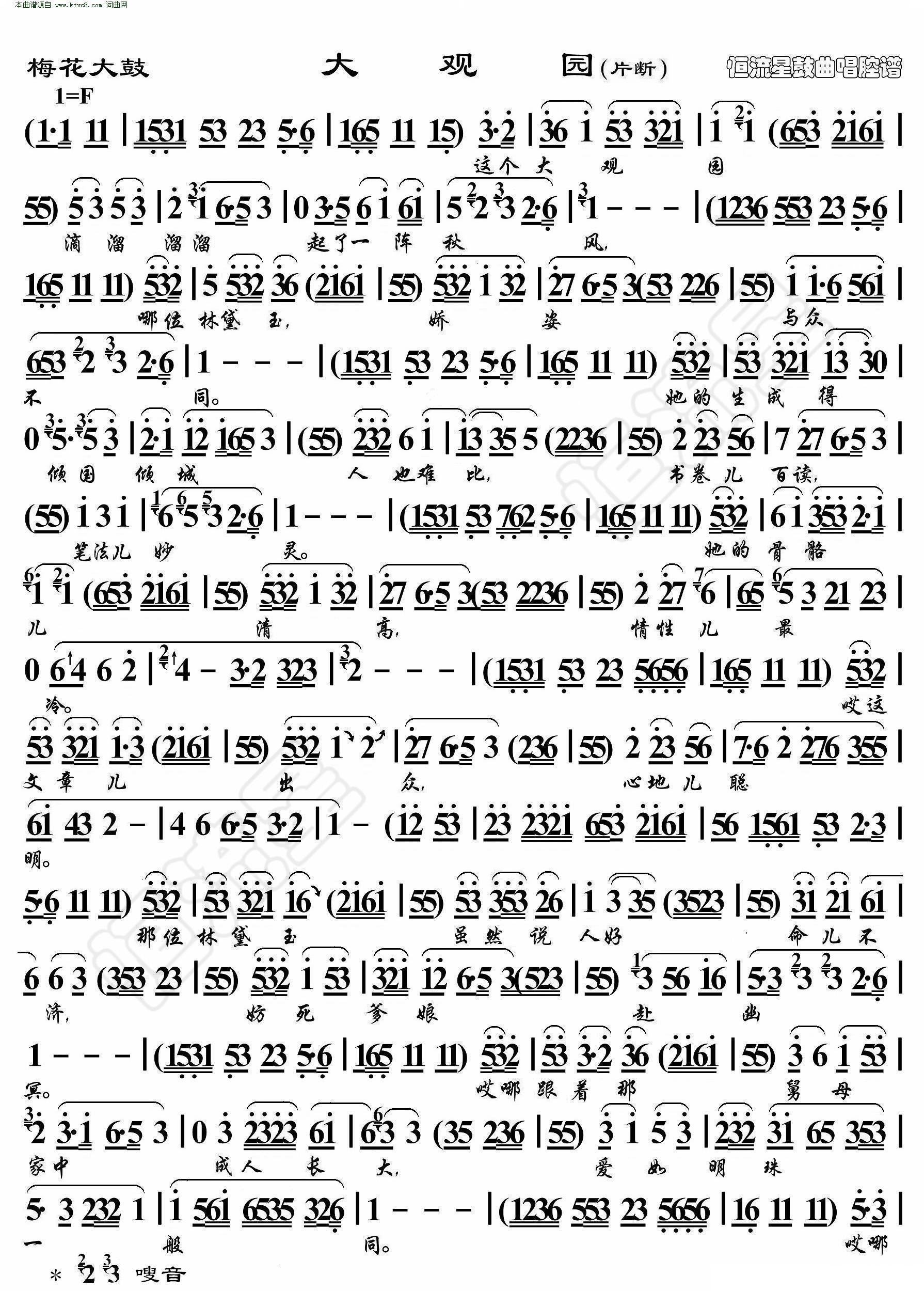 > 大观园 梅花大鼓 鼓曲演唱谱