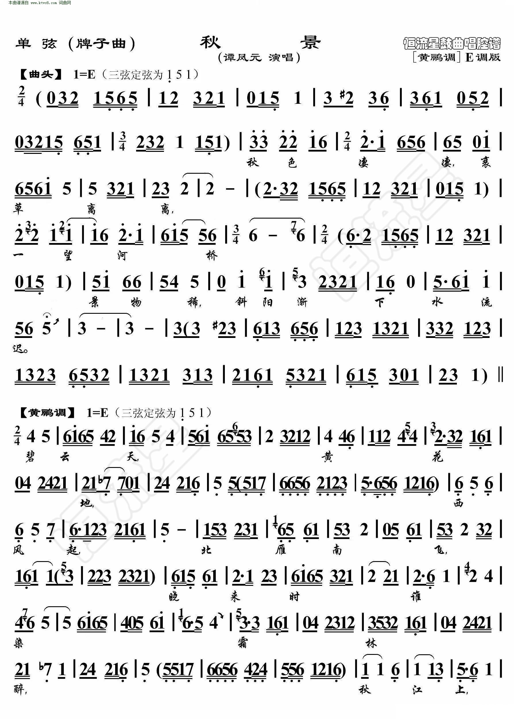 > 秋景 单弦 鼓曲演唱谱