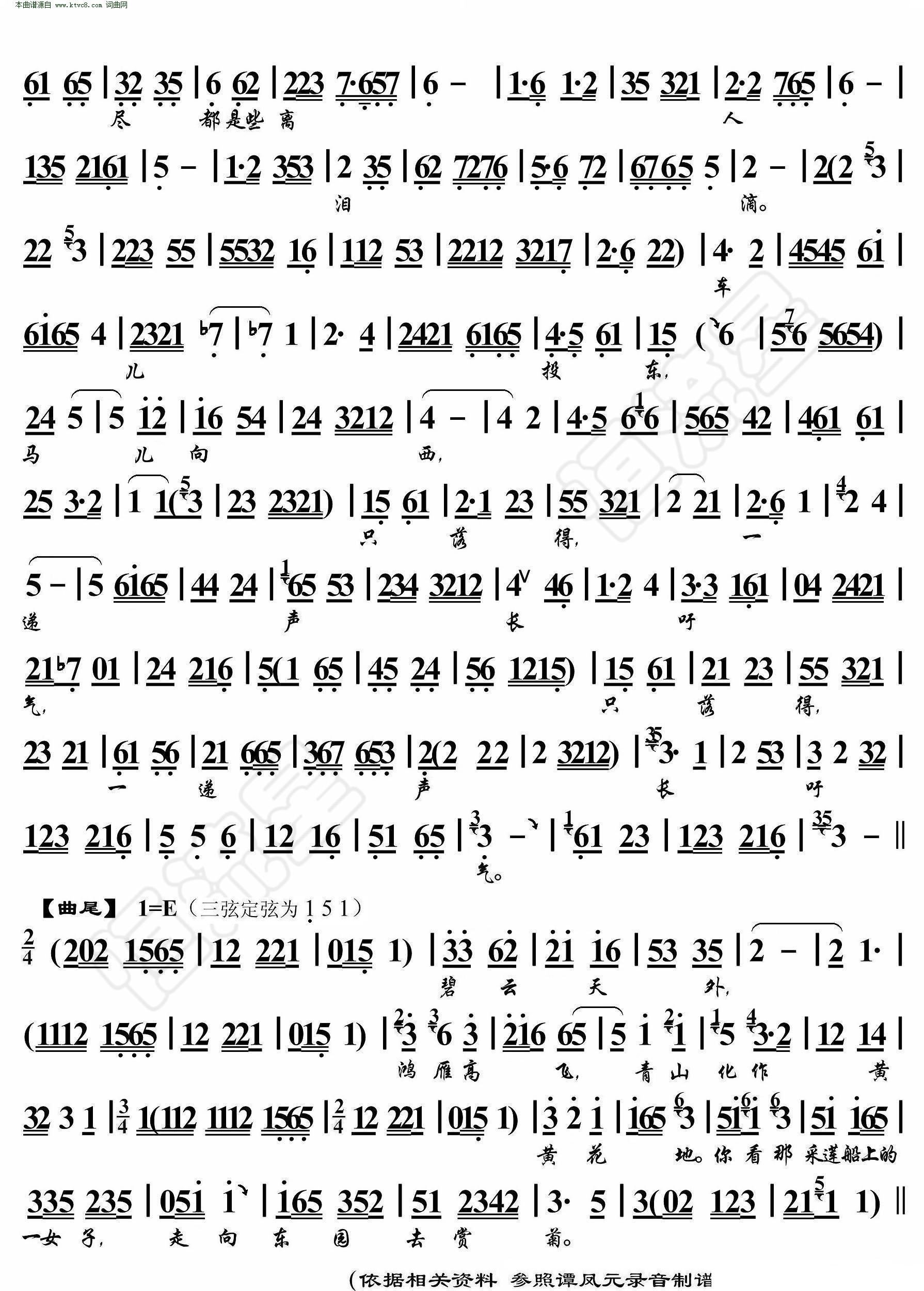 秋景 单弦 鼓曲演唱谱