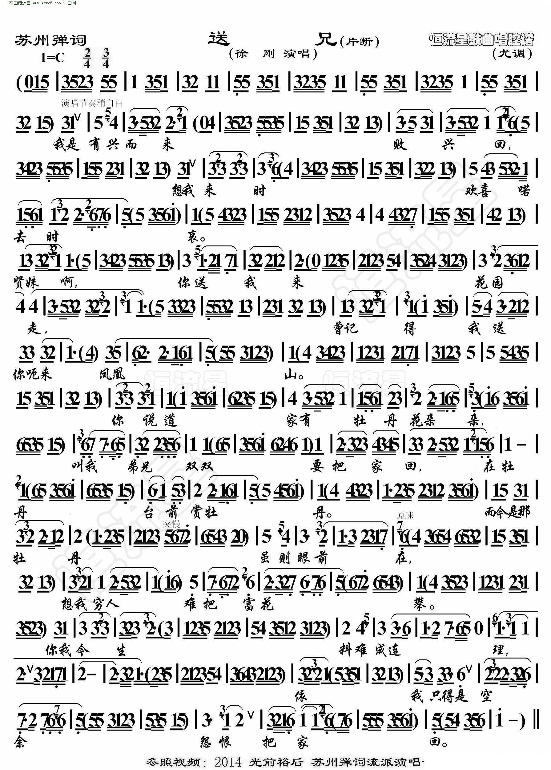 送兄 苏州弹词 鼓曲演唱谱