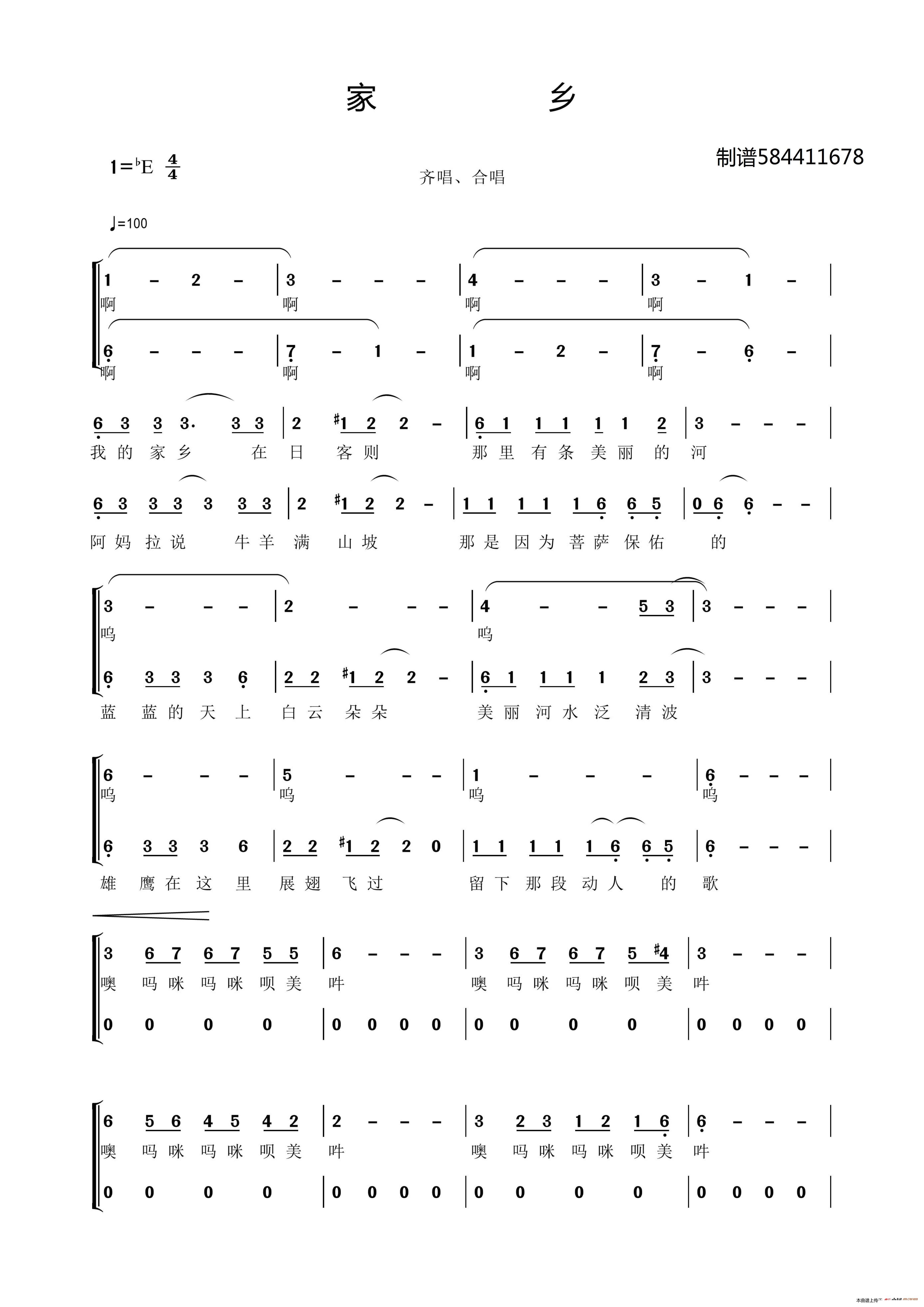 > 家乡合唱谱 二部合唱