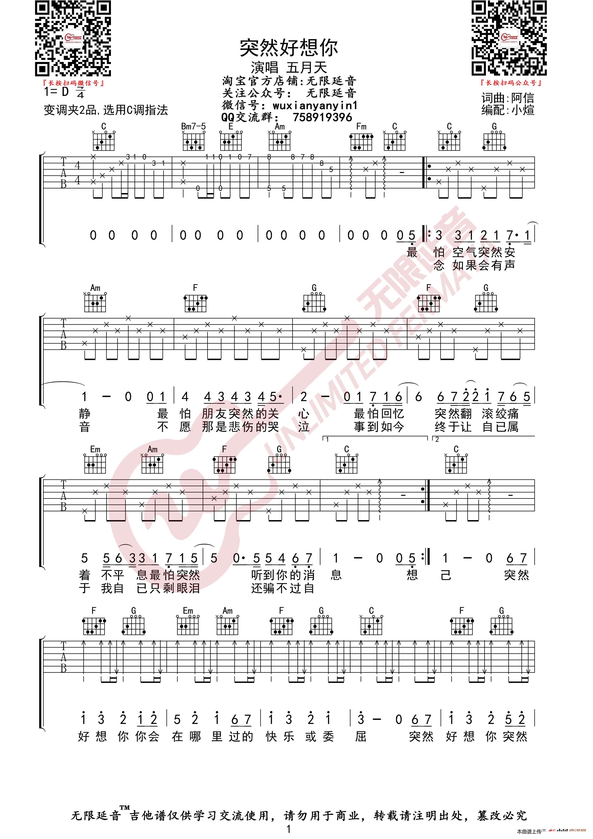 > 五月天 突然好想你 无限延音编配
