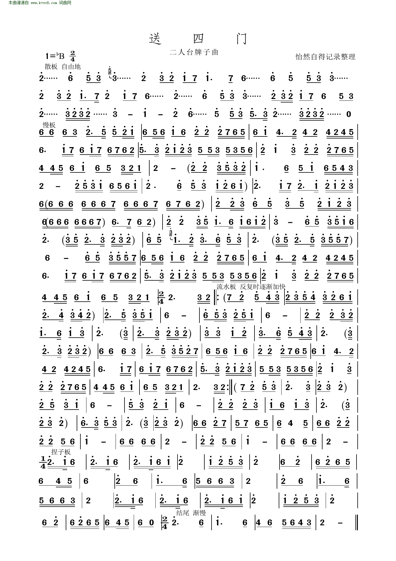 > 送四门 二人台牌子曲
