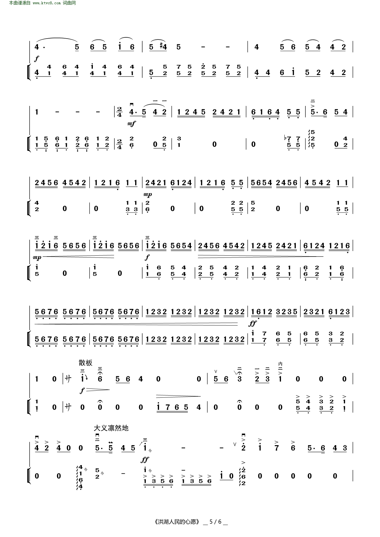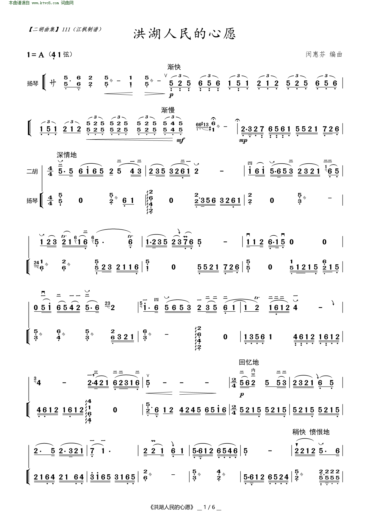 洪湖人民的心愿 二胡曲