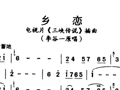 - [歌谱] 乡恋 三峡传说 插曲
