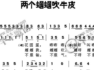 简谱网 > 歌谱 > 两个蝈蝈吹牛皮