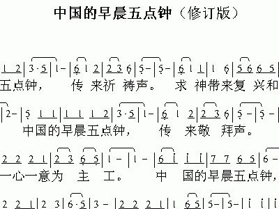 > 中国的早晨五点钟