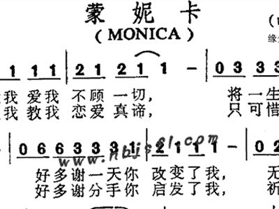 - [歌谱] 蒙妮卡 Monica 粤语 田震
