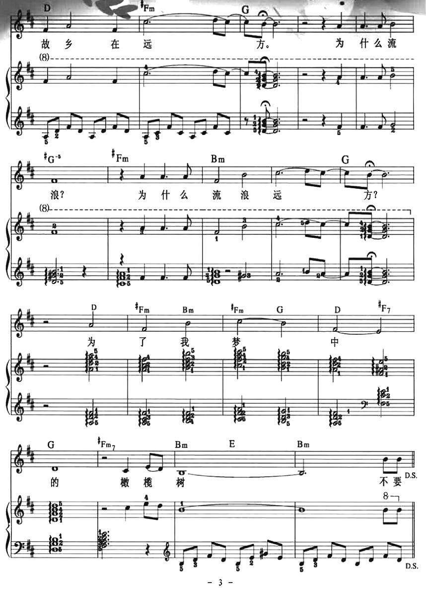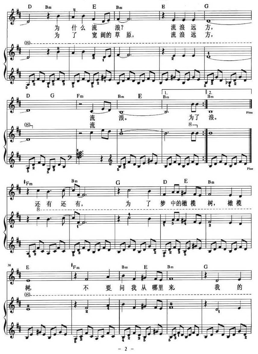 - [歌谱] 橄榄树 混声无伴奏合唱