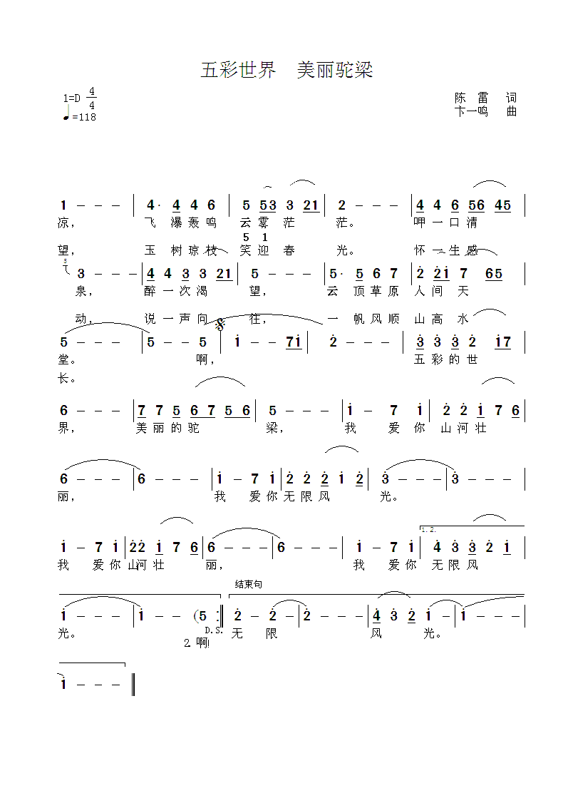- [歌谱] 五彩世界 美丽驼梁