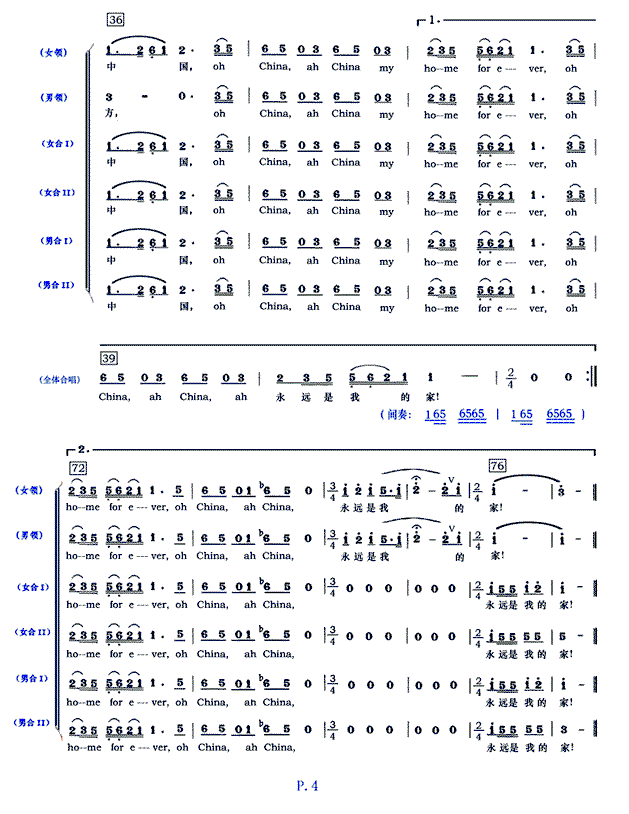 中国 我永远的家 混声四部合唱