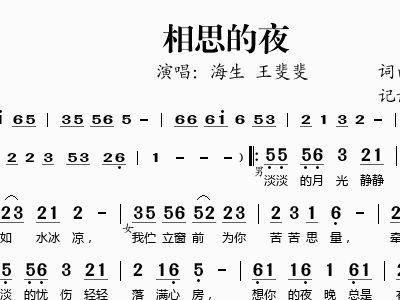 - [二胡谱,歌谱] 相思的夜 海生 王斐斐