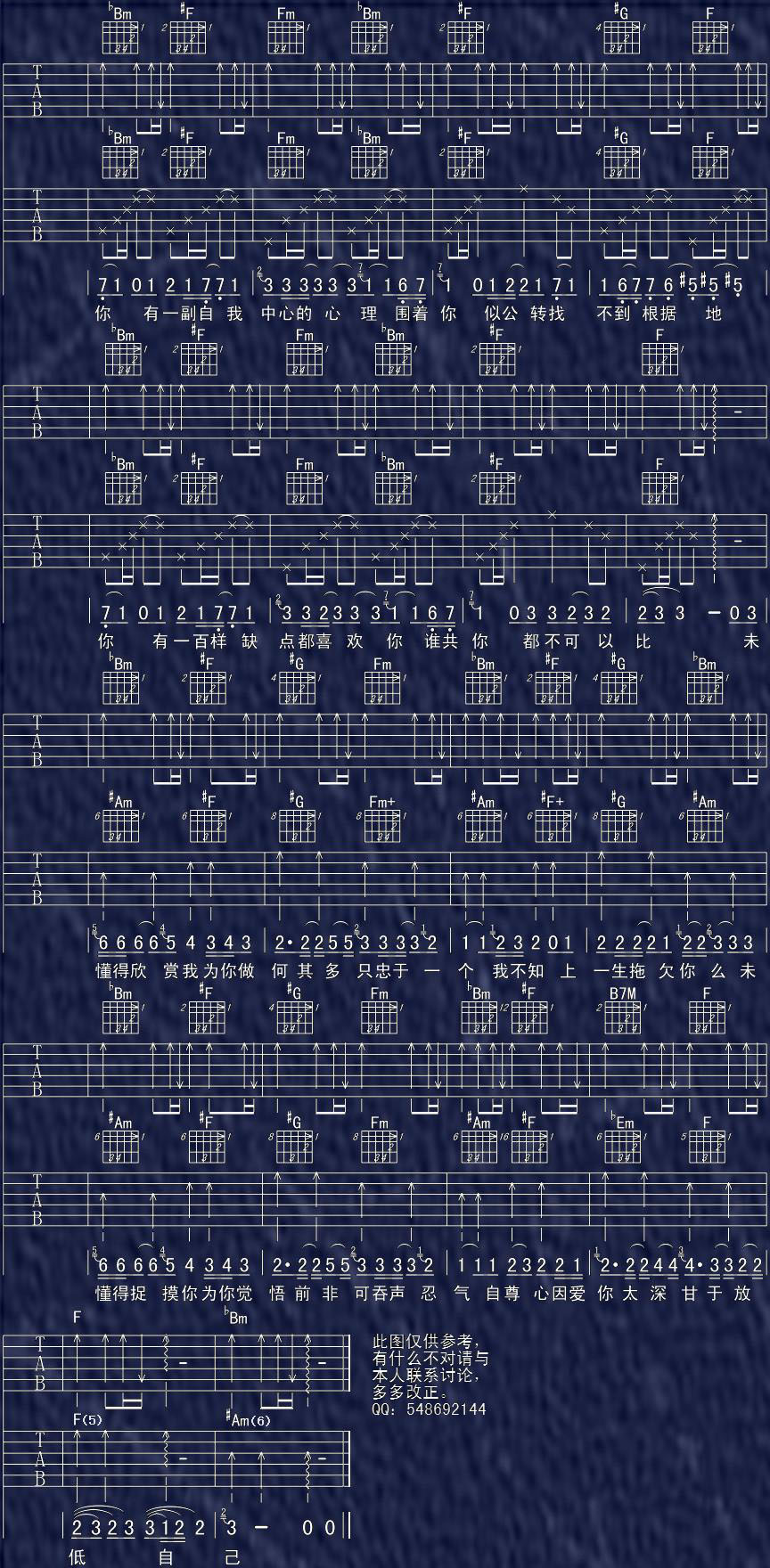 - [吉他谱] 其实我介意