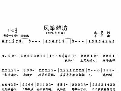 - [歌谱,古筝谱] 风筝潍坊