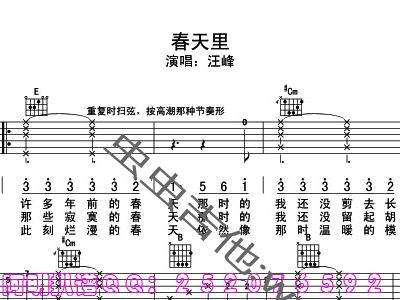 - [歌谱,吉他谱] 春天里 汪峰 六线