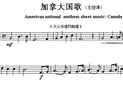 > 各国国歌主旋律 加拿大 American national amthem sheet music